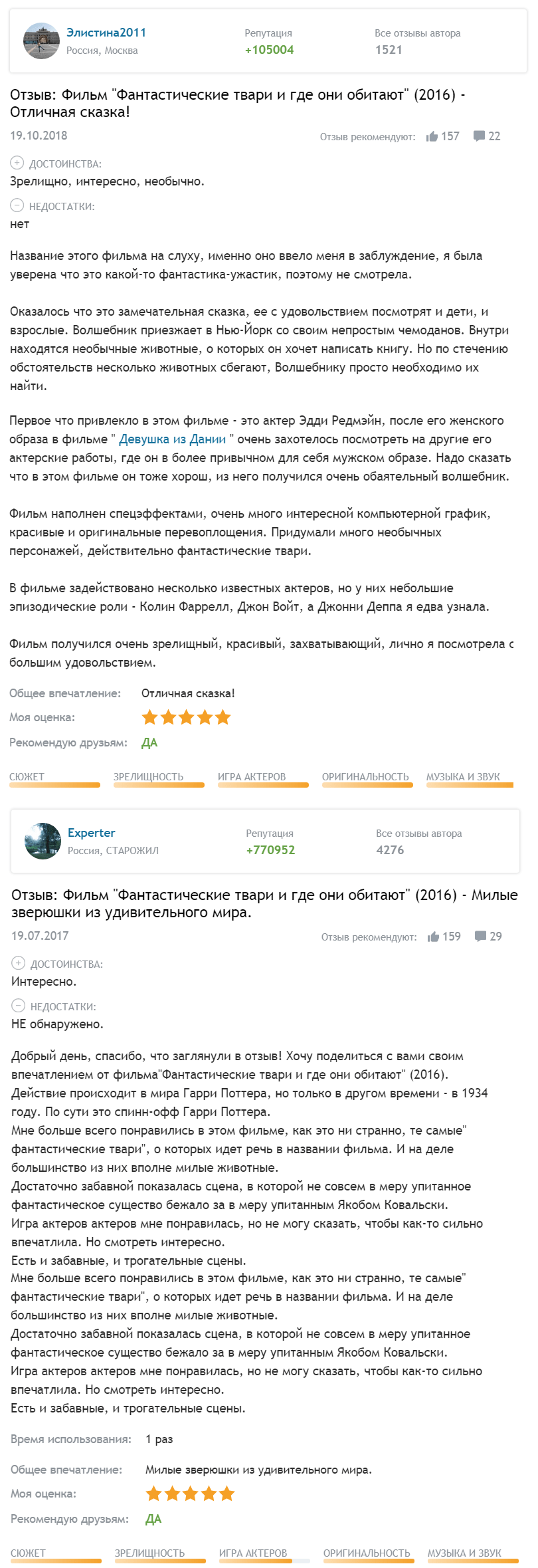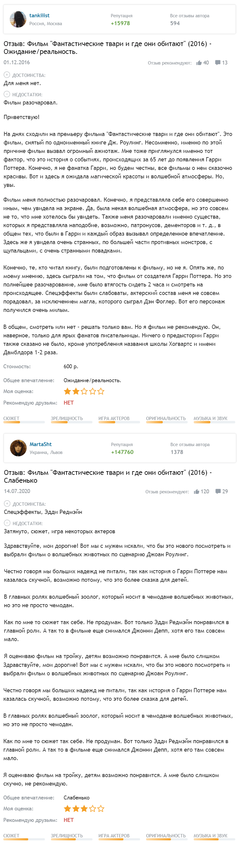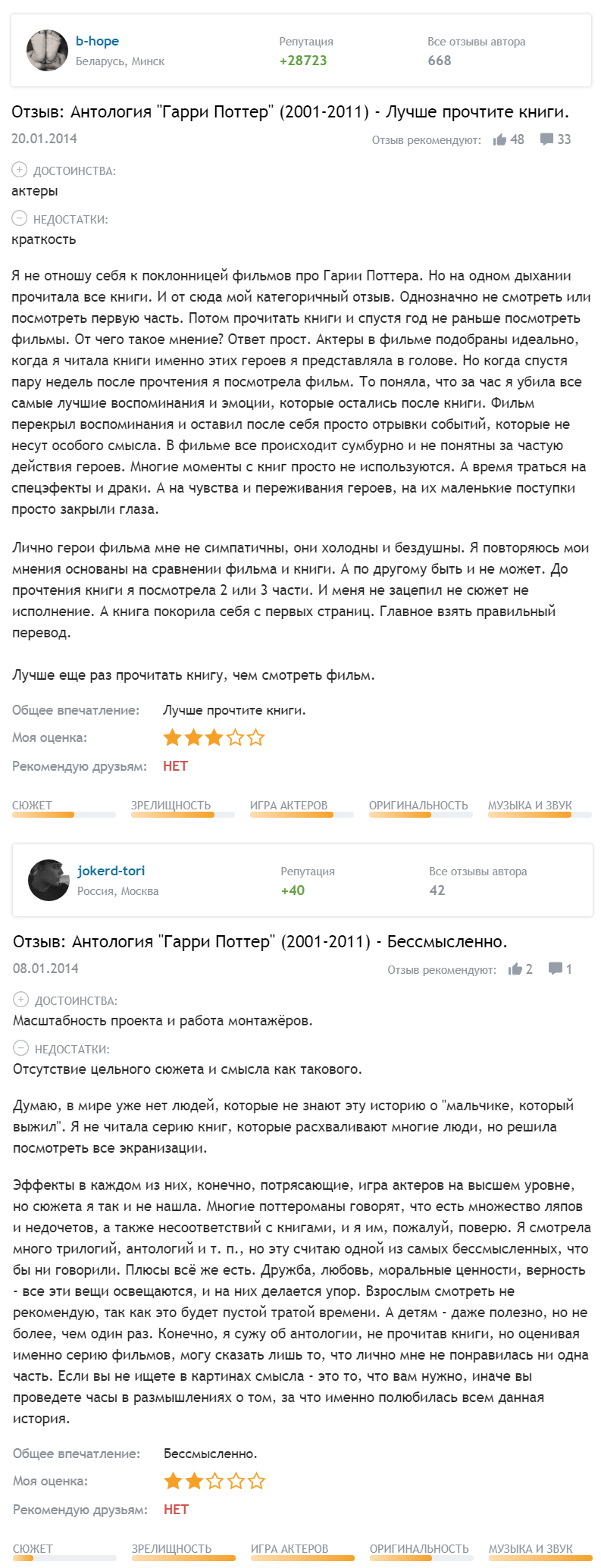 Для определения плюсов и минусов были проанализированы реальные рецензии и отзывы на фильмы по мотивам книг Дж. К. Роулинг.